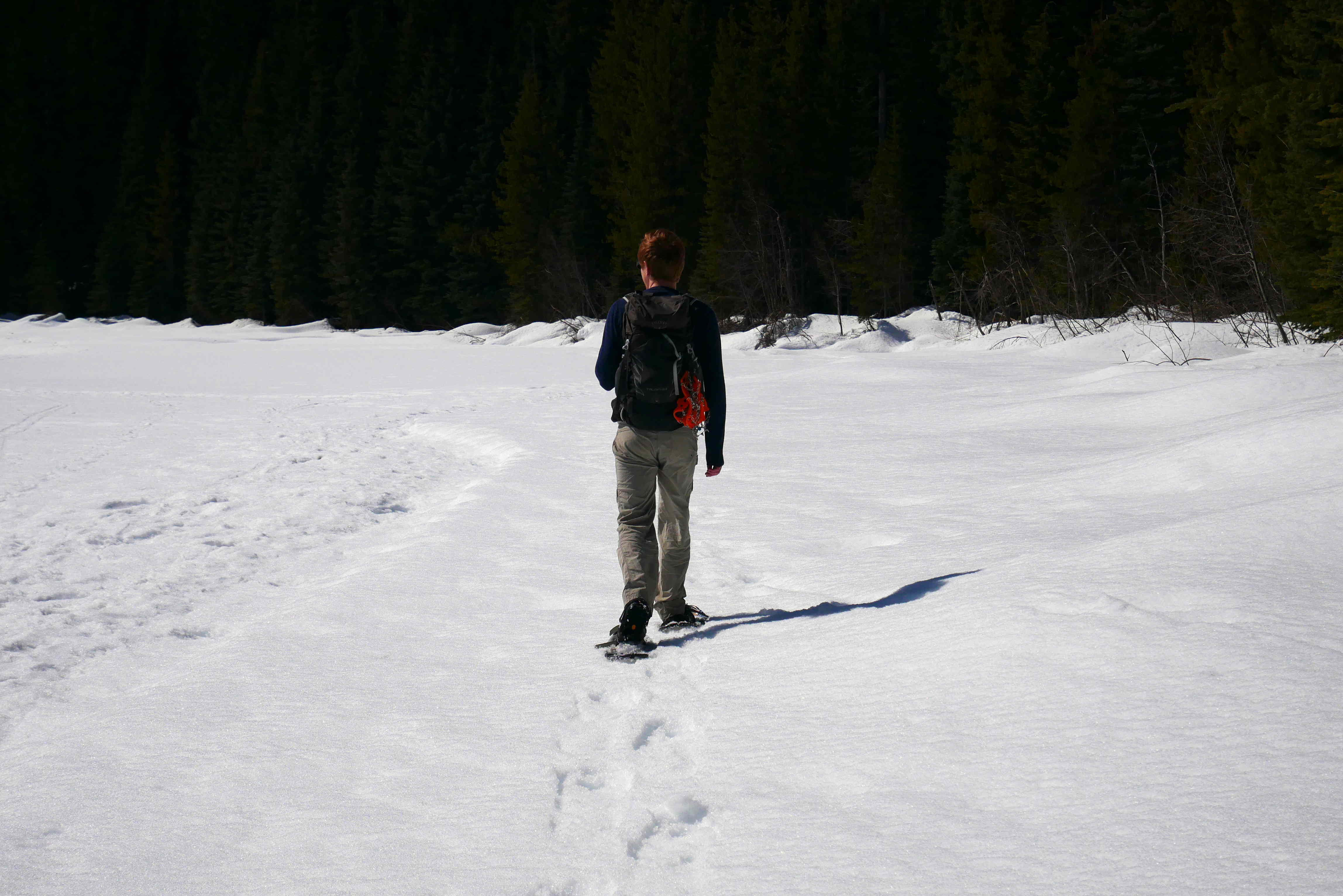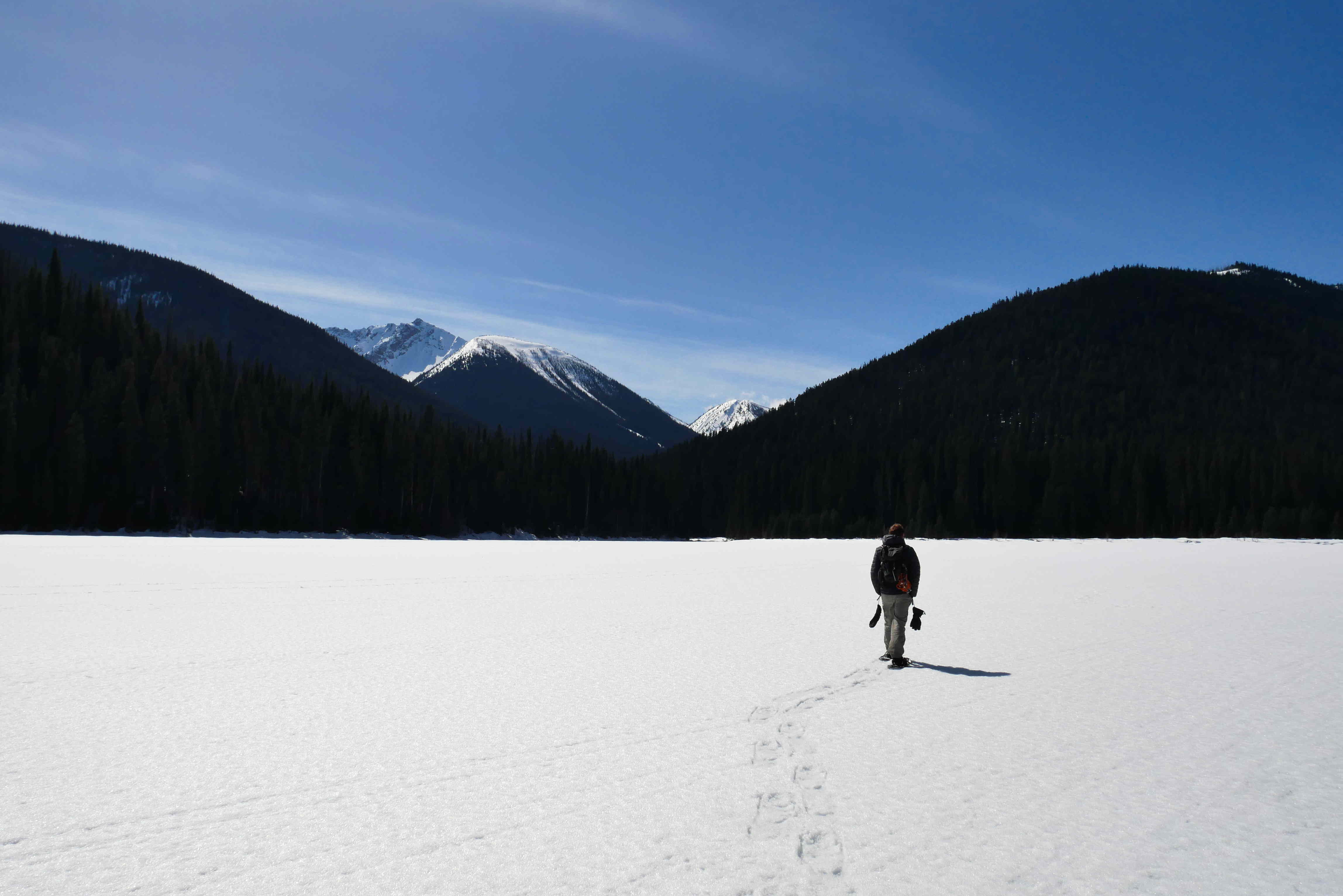 3. The snow looks smashing… Or should that be post-holing? I am glad that you didn’t fall in the lake, and now you can say that you have walked across one. It looks beautiful.