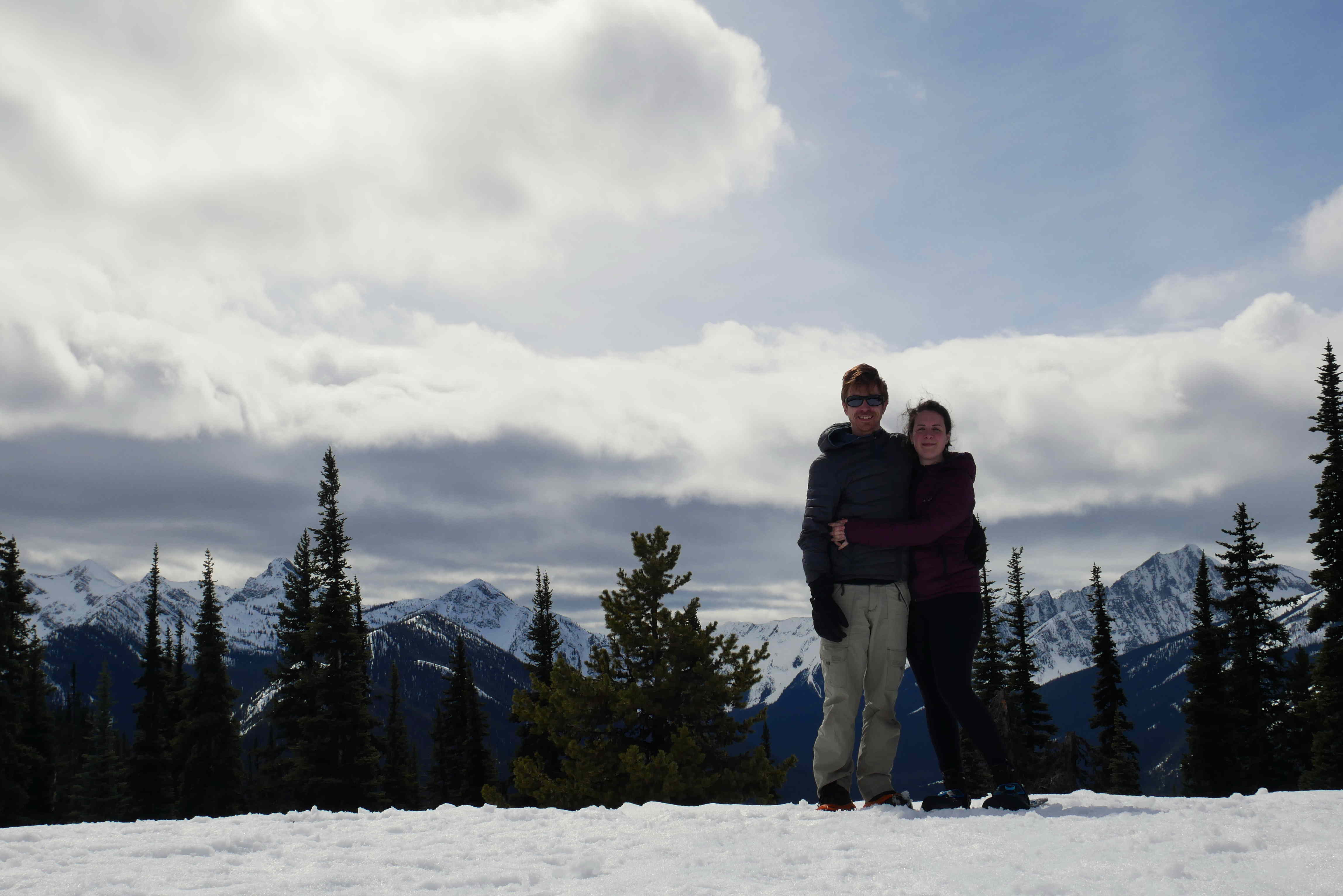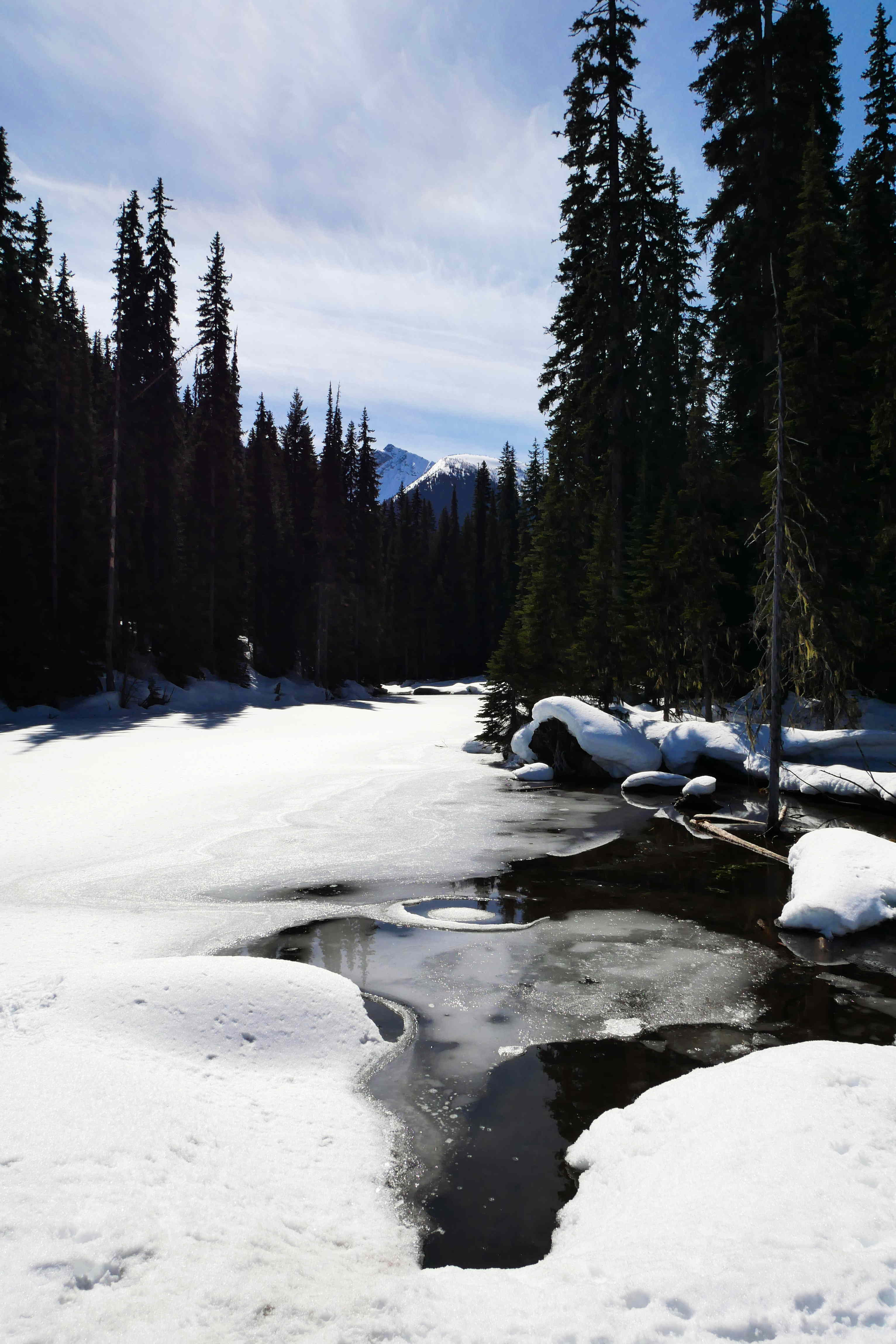 The big flat area is Lightning Lake itself. Although it seemed to be currently frozen, it won’t be frozen forever – as Rosie kept reminding Ollie. In fact, you can see where it had started to thaw in some shallow and sunny areas. After Rosie got over her fears, we did have a lot of fun playing with our new snowshoes.