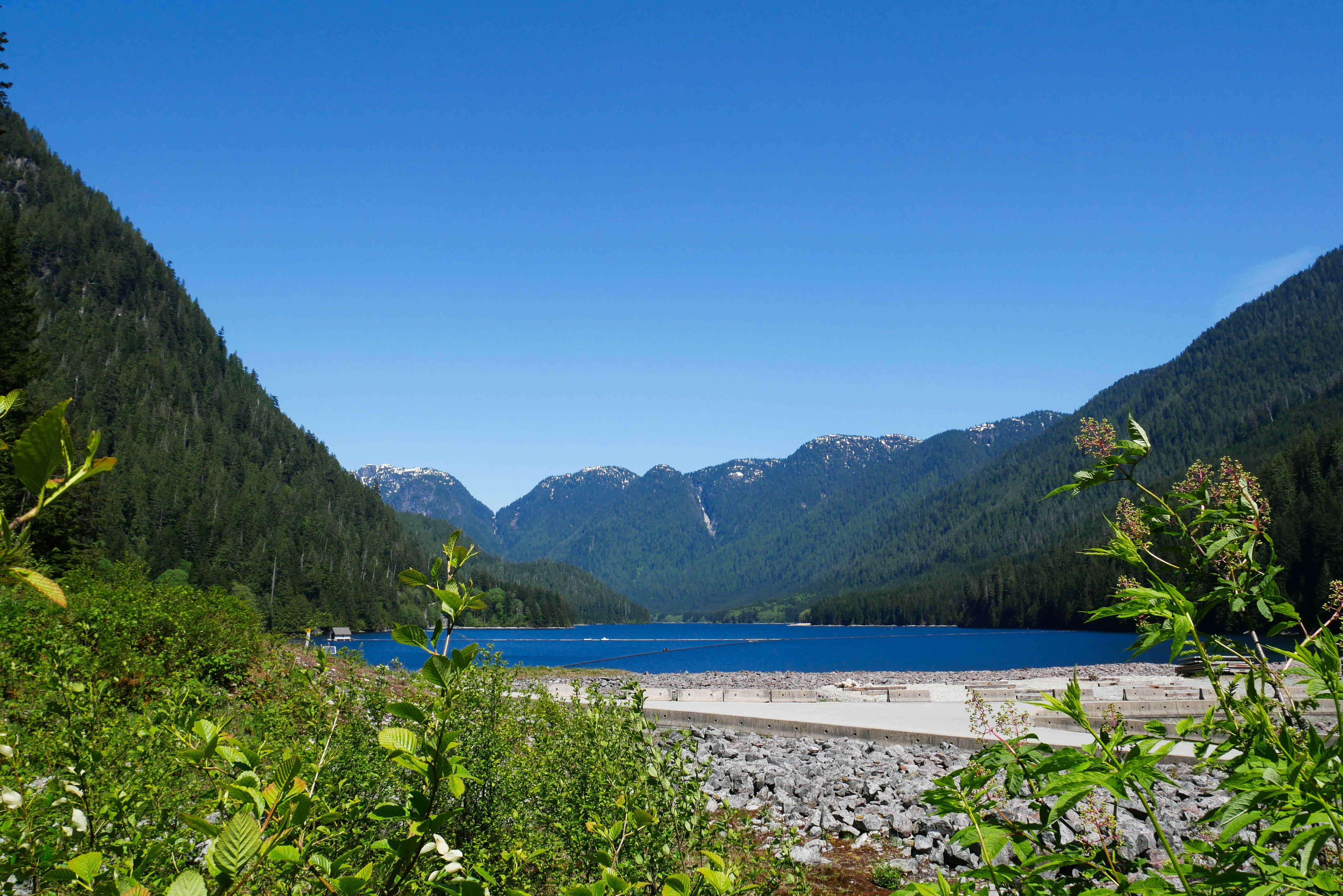 Rosie does not like cycling off-road, there are too many rocks and roots to bump into and it is much easier to fall off. She wanted to cycle along the “trail-way” to Seymour Lake, which is a drinking water reservoir holding up to 32 billion litres of water for people in Vancouver. There is a paved road all the way to the lake, which is only open to pedestrians and cyclists. Despite this, Ollie still tricked her into a detour onto a “gravel path” near the start, which turned out to have some suspiciously large lumps of gravel on it. After much complaining and getting off and walking, we took a shortcut back onto the road.