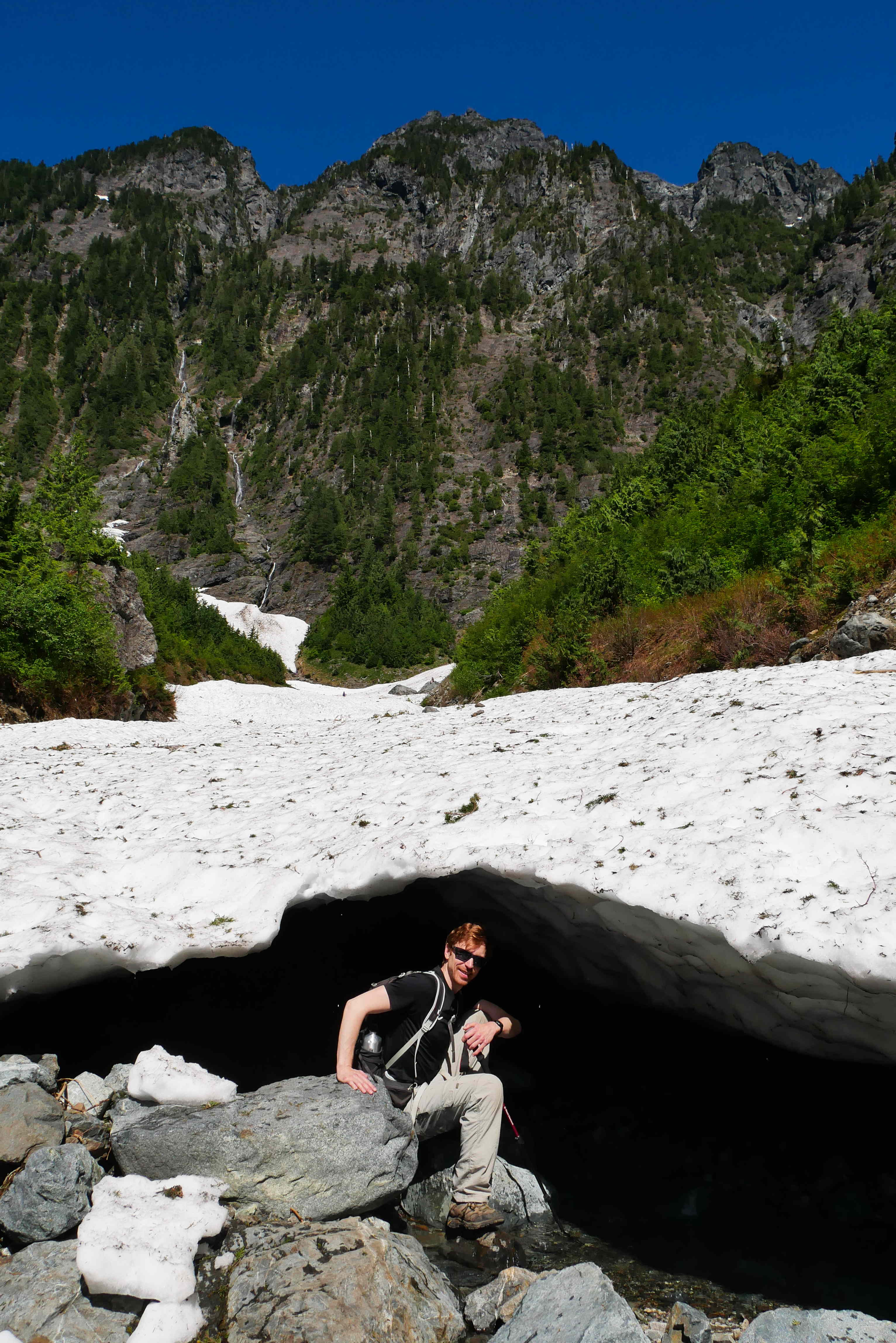 Because of the exciting sailing course last week (the final day was great, slightly too windy but we were eventually allowed out and had a great time) we forgot that we had been back to Golden Ears Provincial Park to see some snow caves on Sunday. That was a sunny weekend too, naively we thought it was hot, but it was nothing compared to this! Anyway, we thought it would be busy, so set off early and were glad we did as the queue of cars to get into the park when we were leaving at lunch time was huge.