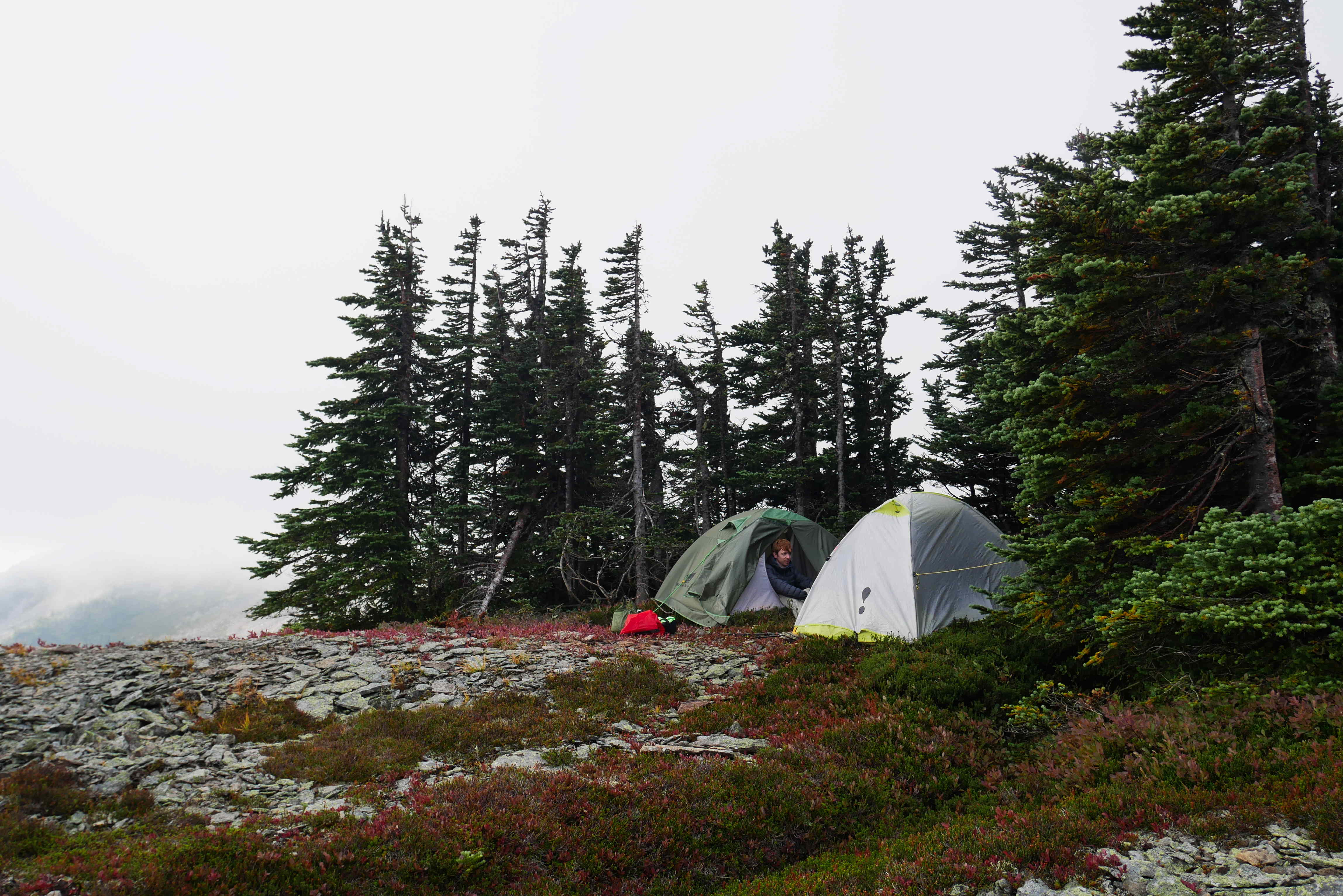 We had left pretty late, so didn’t have time for much exploring before bed, plus it was very foggy. We found an excellent sheltered spot to camp in, hung up our food in a tree and had fun playing cards before bedtime.