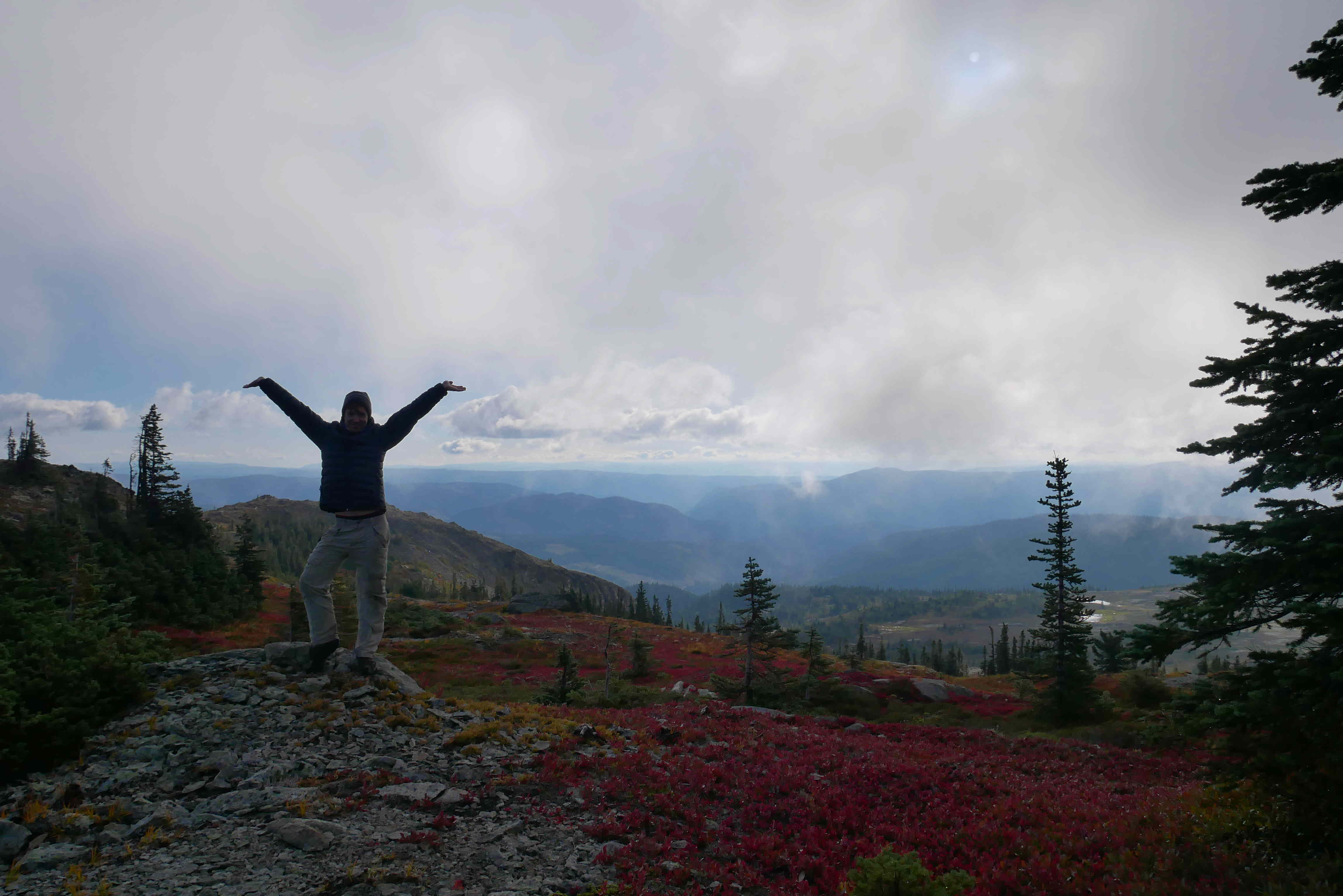 Sunday was slightly better and Monday was supposed to be good, so Ollie drove us 2 hours away to a random exit from the Coquihalla Highway (the “highway through hell” mentioned in previous posts), then 18km down a gravel road so we could hike up to Illal Meadows.