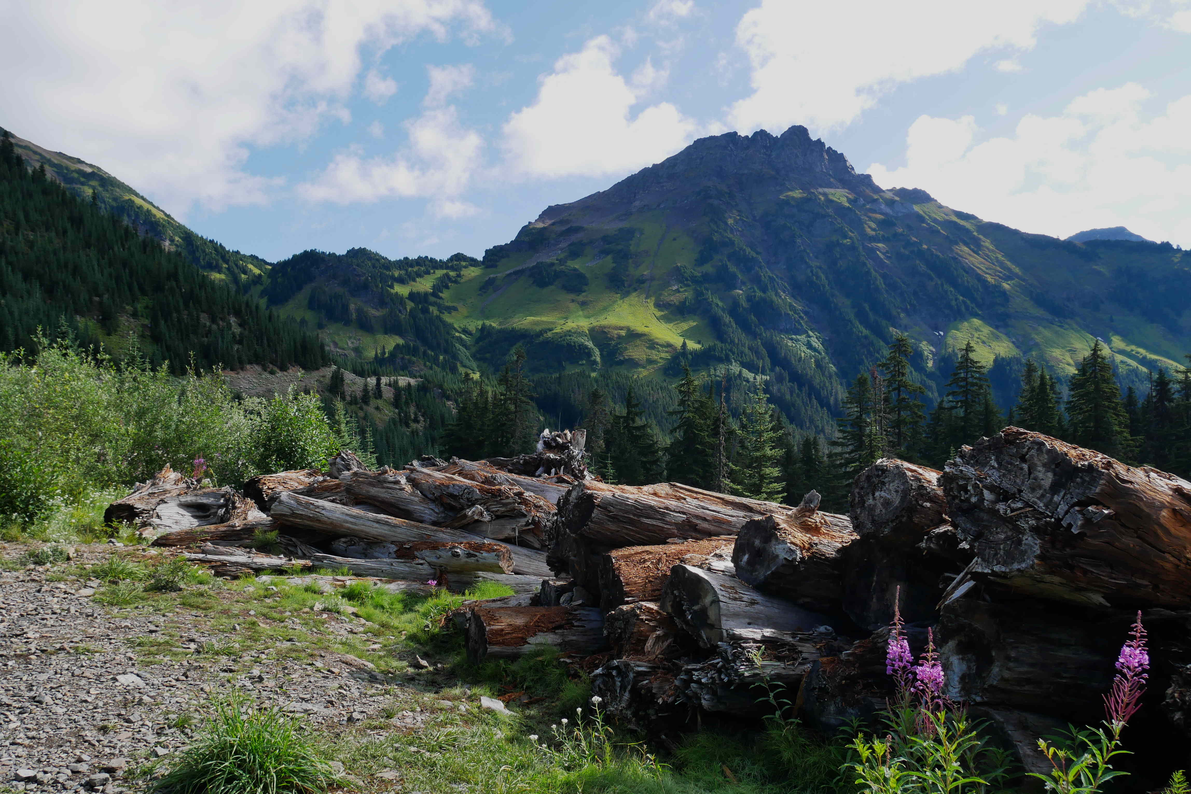Mount Burwell is right on the edge of the map, at the limit of the “legal backcountry access”. (The area beyond is protected as it supplies the drinking water for Vancouver and the surrounding area.) This was probably the hardest day’s walking we have done so far at about 30km in total with lots of elevation gain. On Saturday, we got up at 5am and started walking in the dark – the first part is flat and we wanted to give ourselves as much daylight as possible. Just to make it even harder, we decided to park an extra 2km from the trail head, as the car park gate is only open from 7am to 7pm. It was quite fun walking in the dark with our head torches and the flat part went pretty quickly.
